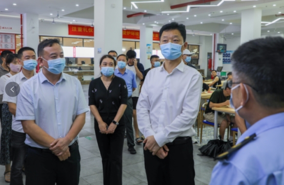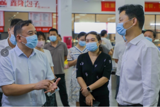 6月24日下午,市委常委、市委秘书长胡果雄一行对我院润泽学生食堂进行督导调研。市委副秘书长段志阳、市委副处级督查专员唐进标、市市场监督管理党组成员、副局长龙华参加调研督导。best365中国官方网站党委副书记、校长曾广胜,党委委员、副校长黄红卫,后勤基建处处长贺旭等人陪同督导调研。