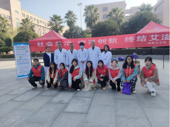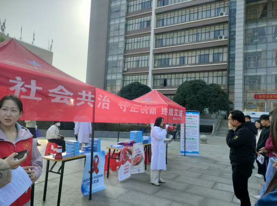 12月1日,best365后勤基建处联合珠晖区人民医院在卓越广场开展了一场以“社会共治 守正创新 终结艾滋”为主题的“世界艾滋病日”宣传教育活动。