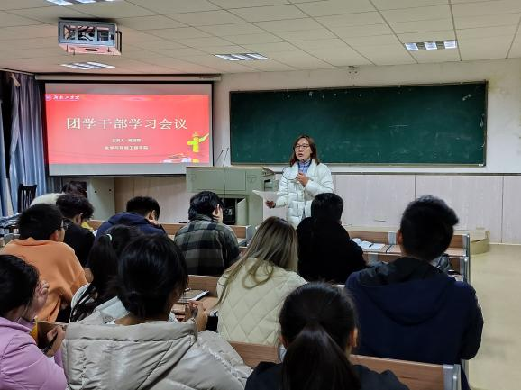 12月23日下午5时40分,化学与环境工程学院在1301召开团内干部会议。本次会议由院党委副书记蔡玲、学工办主任兼团委书记陈凌霄带领团学会全体成员及各班班长、团支书进行学习。