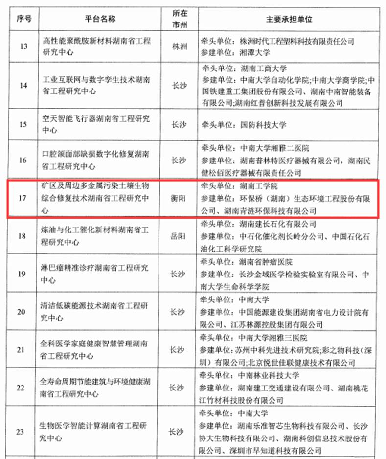 近日,湖南省发改委下发了《关于2021年度湖南省工程研究中心建设项目的批复》(湘发改高技〔2021〕1037号),由best365化学与环境工程学院牵头,联合环保桥(湖南)生态环境工程股份有限公司、湖南青涟环保科技有限公司申报的“矿区及周边多金属污染土壤生物综合修复技术湖南省工程研究中心”成功获批!