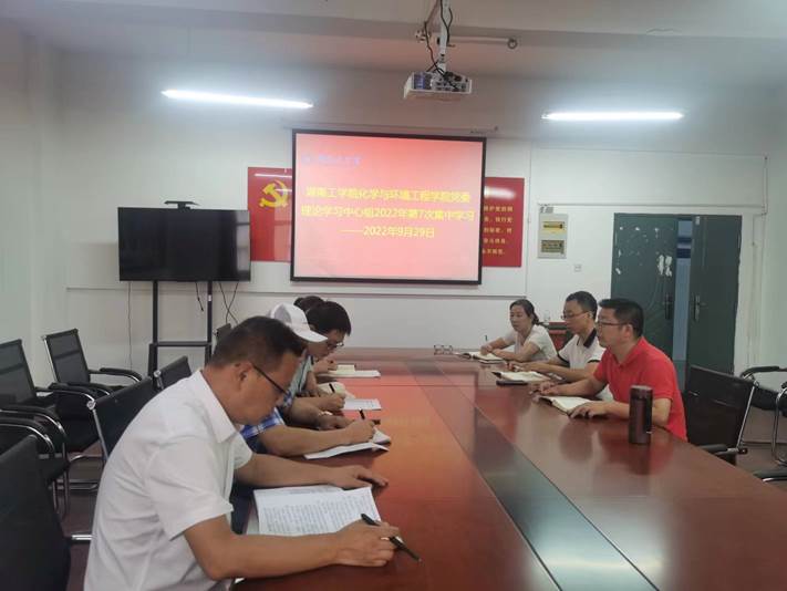 9月29日下午,2022年化学与环境工程学院党委理论学习中心组第7次集中学习在1310举行。会议由学院党委书记周立同志主持,院党委理论学习中心组全体成员参加。