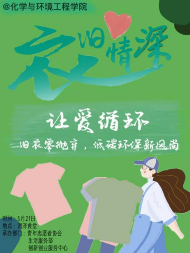 为培养同学们的科技创新意识和绿色环保理念,丰富同学们的实践经验,提高同学们的创新能力,化学与环境工程学院举办了“以青绿为体,以日新为道”一院一品绿色·创新系列活动,活动包括:1、“明确地爱,真诚地喜欢,勇敢地前行”520鲜花自助活动;2、“依旧情深”旧衣捐赠活动;3、“随手一分,美化十分”垃圾分类宣传活动;4、“健康环保每一天,无烟地球为明天”无烟日宣传活动。活动面向学校全体师生。