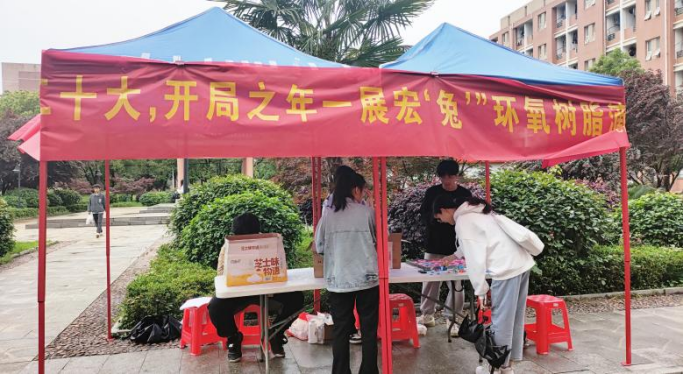 今年是全面贯彻落实党的二十大精神的开局之年,为进一步宣传学习党的二十大精神,426日至28CH化学协会在C区食堂前坪举办了“学习二十大,开局之年一展宏‘兔’”环氧树脂滴胶DIY主题活动。本次活动由协会指导老师陈凌霄指导。
