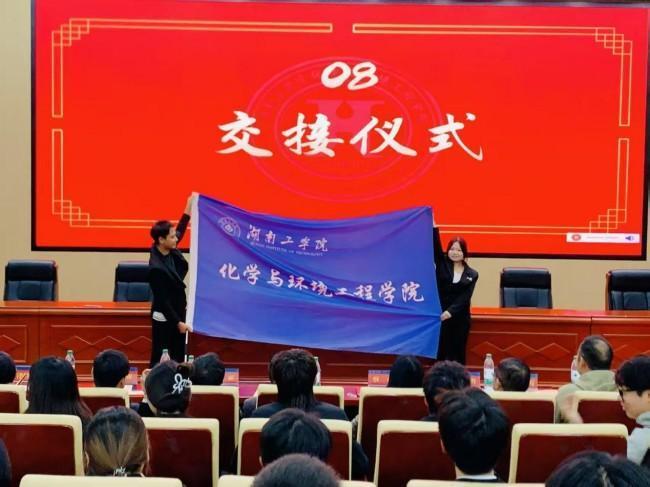 第四届执行主席尹慧与第五届执行主席马琪完成交接,标志化学与环境工程学院团委学生会责任传承与使命延续。