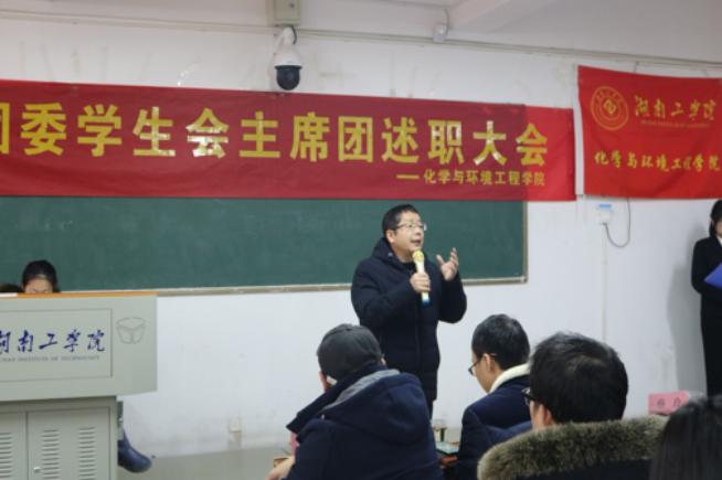 化学与环境工程学院1227日上午10时在1515室举行了第一届分团委学生会主席团述职大会,出席本次活动的有党委书记周立、党委副书记、院长辛俊亮、党委副书记蔡玲、副院长黄俊歆、副院长刘宁、学工办主任兼分团委书记陈凌霄、教务办主任刘赛、综合办公室主任刘武、组织员谭斌及全体辅导员团学会全体成员和各班班团代表参加本次会议