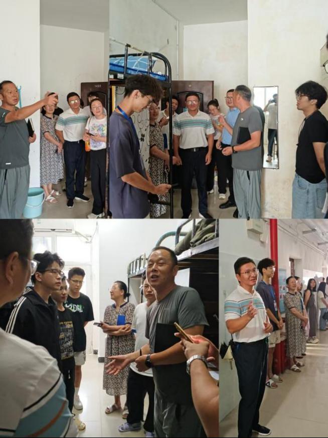 走访中,学院领导细致排查宿舍门窗、水电、家具等设施情况,逐项核验卫生细节,旨在学生打造整洁、安全、舒心的居住环境。面对初入校园的大一新生及陪同家长,娄晓明主动询问入住需求,从校园生活指引到专业规划建议,耐心答疑解惑,在亲切交流中帮新生卸下陌生感、快速融入校园;针对返校老生,李来丙重点倾听学业进展与生活难题,精准回应诉求、疏导情绪,助力大家迅速调整状态,以饱满热情投入新学期。