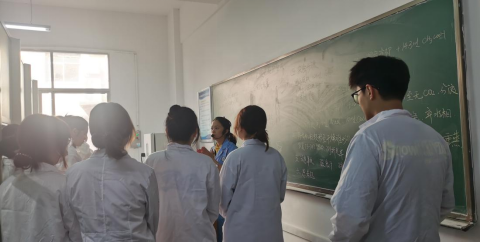 由于学生们是第一次接触有机化学实验,首先王霞老师详细地讲解了有机化学实验室的规章制度、课堂纪律要求以及安全注意事项,接着王老师通过提问的方式引导学生回顾了羧酸酯的制备原来和方法的理论知识,归纳了催化剂、反应温度对反应产物的影响规律;通过实物和绘图结合的方式介绍了每个装置的名称与作用以及回流、蒸馏装置的搭建原则和要求。整个实验教学过程中,逻辑思路清晰重点内容突出,课堂气氛活跃,充分调动起学生积极性和主动性,凸显了“以学生为中心”的教学理念。