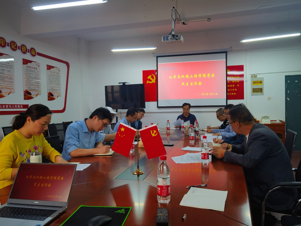 化学与环境工程学院党委于5月15日下午3点在1310会议室召开2022年度民主生活会。此次会议的主题是:全面贯彻习近平新时代中国特色社会主义思想,深刻领悟“两个确立”的决定性意义,增强“四个意识”、坚定“四个自信”、做到“两个维护”,团结带领党员干部群众以奋发有为的精神贯彻落实党的二十大作出的重大决策部署。学校党委书记宋克慧、组织部常务副部长杨朗、监督检查室主任闫英才到会指导。