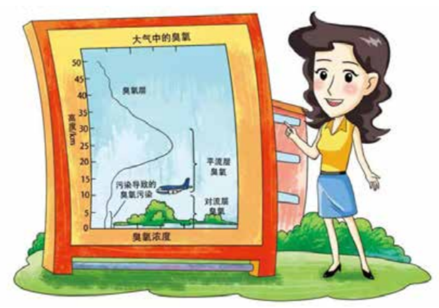 臭氧普遍存在于从地面到50千米的地球大气中,其中大部分集中在距离地面10-30千米的平流层中,仅有10%左右的臭氧存在于距离地面较近的对流层大气中。