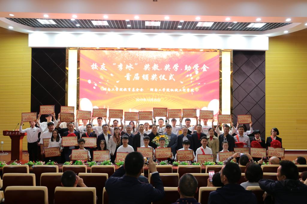 机械工程学院院长刘吉兆教授在致辞中向李冰校友表示了崇高的敬意和真挚的感谢。他希望全院学生以获奖同学为榜样,发奋读书,立志成才,实现李冰校友以及湖工寄予的厚望;希望全院老师以获奖老师为榜样,育人为本,进一步强化“奋斗的姿态,战士的担当”,以“工作干到感动自己,担当尽责不忘初心”的精气神,建设美丽新湖工,以优异的成绩向中华人民共和国建国70周年献礼。