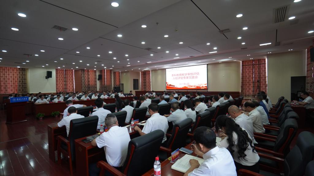 专家组成员湖北中医药大学党委书记唐峻、蚌埠学院原党委书记刘泽功、湖南大学实验室建设与设备管理处处长杨旭静、湖南科技大学研究生院院长李海萍、国家管网集团广东省网公司外部董事钱建华,项目管理员西南石油大学教学评估处质量评估与监测研究办公室主任熊凤,秘书三江学院质量管理与评估处处长卞钰,湖南省教育厅高等教育处副处长王荣,五位见习秘书和全体校领导出席会议。