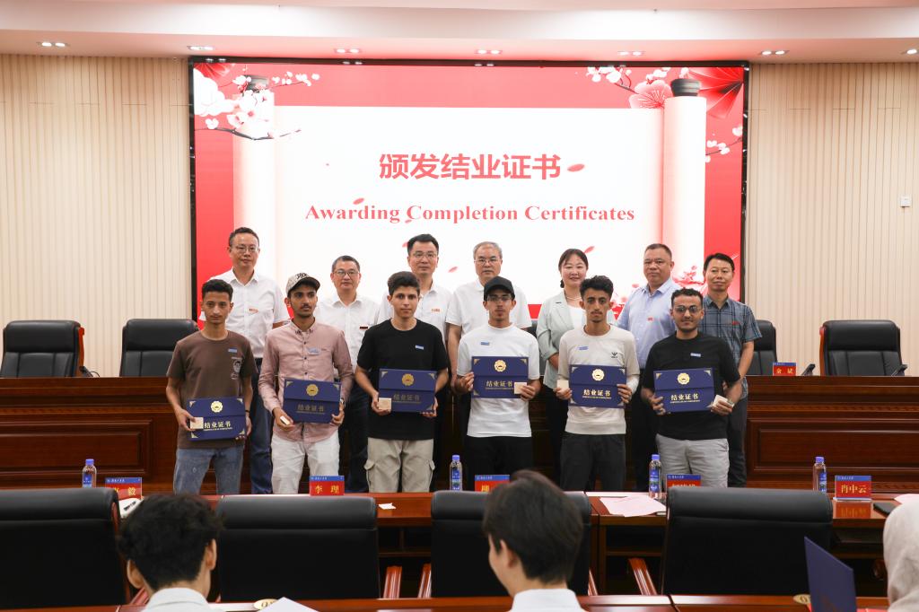 何建雄与柳星对朵娜等5名表现优异的国际学生进行了表彰,并为结业学生颁发了结业证书和纪念品。