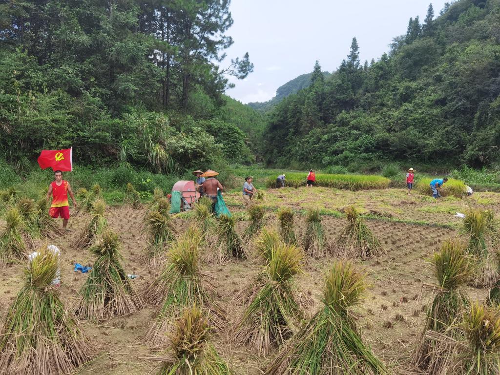 best365中国官方网站驻村工作队获知情况后,马上与联点干部、辅警、村“两委”干部和党员群众组成一支“助农抢收队”,顶着炎炎烈日,仅用半天时间,就将千余斤黄澄澄的稻谷收回到谭少成家的晒谷坪上。(图/何伟军 文/杨朗 刘康 审核人/一审:李琪 二审:彭国柱 三审:肖中云)