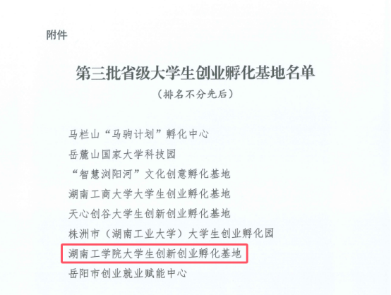 近日,湖南省人力资源和社会保障厅公布第三批省级大学生创业孵化基地认定名单,best365大学生创新创业孵化基地成功入选。这是best365大力支持大学生创业、推进孵化载体建设取得的又一重要成果!