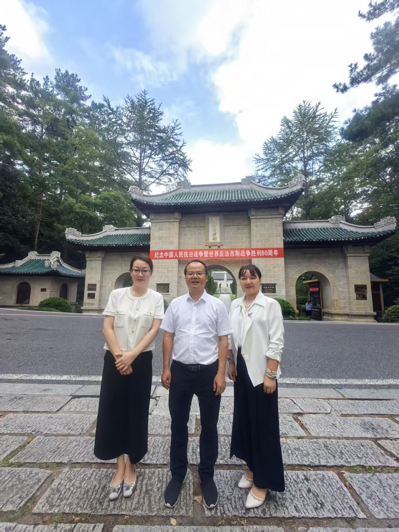 活动伊始,全体人员在“七七纪念碑”前列队肃立,齐声高唱《松花江上》《大刀进行曲》《没有共产党就没有新中国》等抗战经典歌曲。激昂的旋律在群山间回荡,唤醒沉痛的历史记忆,激发起在场每一个人的爱国情怀与奋进力量。随后,大家缓步进入忠烈祠享堂,面向抗日阵亡将士总神位庄重三鞠躬,并敬献花篮。素雅的菊花寄托着无尽哀思,庄严的仪式表达着深切敬仰。