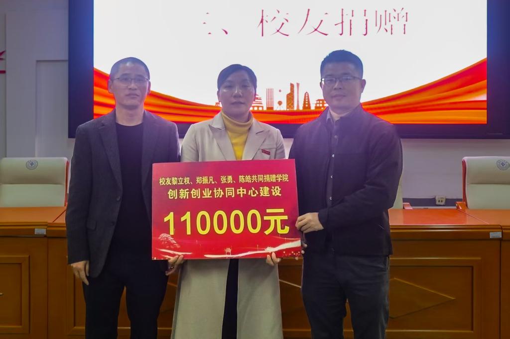黎立权和郑振凡回顾了母校培养经历,表示将全力支持学院创新创业协同中心建设,助力学生成长。黎立权表示将进行总额为人民币三十万元的持续捐赠,感恩母校的培养。