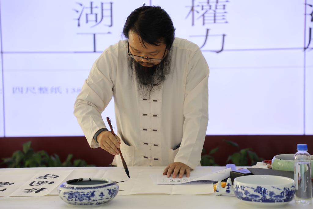 活动现场,许正扬以“廉”为核心创作主线,挥毫泼墨间完成了“强化清廉引领、规范权力运行、护航湖工发展”“清风沐校园 廉洁伴成长”等20余幅主题书法作品。同时,现场指导师生书法技巧,分享“笔墨言志、廉洁修身”的感悟,让师生在艺术熏陶中深化对廉洁理念的理解。