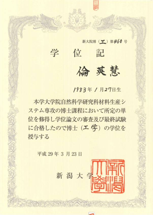 (5)伦英慧 获得日本新潟大学博士学位