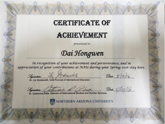 (4)戴洪文 国家公派美国北亚利桑那大学 访问学者(2016.2-2016.7)