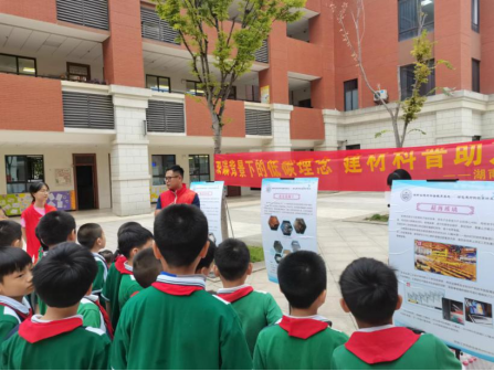 9月13日下午best365中国官方网站新型建筑材料研究院娄晓明院长带领研究院的博士们和应用化学、化学工程与工艺、无机非金属材料工程专业的大学生志愿者,在衡阳市可津小学开展了“双碳背景下的低碳理念,建材科普助力’双减’”全国科普日主题活动。此次活动通过知识展板、影音资料、实物模型、应用实例等形式,深入宣传新型建筑材料在节能、环保中的作用,契合“双碳”理念,使绿色建材观念植根于小朋友们的脑海里。