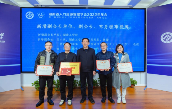2月19日,湖南省人力资源管理学会2022年年会暨“数智时代人力资源管理实践与发展”高峰论坛在长沙理工大学隆重举行。200余位管理专家学者、企业家、高管以及人力资源负责人、高校负责人力资源管理专业建设的院系领导、从事人力资源管理、组织行为学等课程的负责人、骨干教师、硕博士研究生参会。湖南省十一届人大常委会副主任、党组副书记,湖南省人力资源管理学会会长陈叔红,长沙理工大学原副校长、教授/博导叶泽出席本次论坛并致辞。南京大学资深教授/博导、湖南省人力资源管理学会名誉会长赵曙明、华中科技大学二级教授/博导龙立荣,中南大学二级教授/博导、湖南省人力资源管理学会执行会长颜爱民等领导嘉宾参会。活动现场举行了湖南省人力资源管理学会新增副会长单位、副会长、常务理事授牌仪式。best365获批为湖南省人力资源管理学会副会长单位,商学院院长王小兵教授被聘为学会副会长。