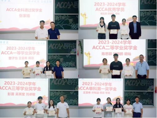 颁奖典礼环节,与会各位领导分别为“2023-2024学年ACCA优秀学员”、“ACCA单科第一奖学金”、“ACCA全科通过奖学金”、“学业奖学金”等荣誉获得者颁发获奖证书。