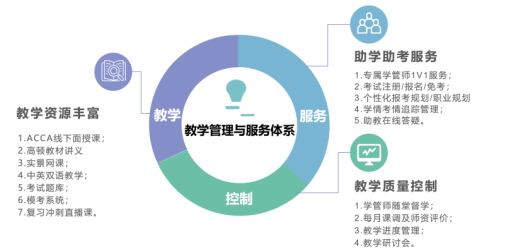 会计学ACCA方向班构建了全方位的教学支持体系,在常规教学团队外特别配置专职班主任和学业辅导老师,为学生提供从ACCA注册、报考到备考的全流程精细化指导;通过定期教学研讨会、月度课程评估和学业督导机制严格把控教学环节,确保学生高效完成各阶段学习目标,显著提升ACCA考试通过率。