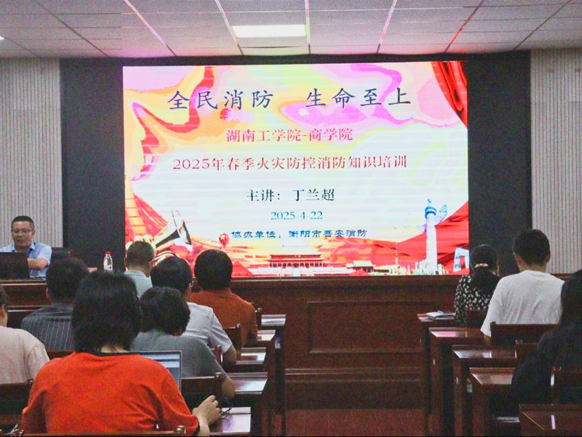 为增强全民安全意识,提高自防自救能力。4月22日下午,衡阳市善安消防局丁兰超受邀来商学院于经管楼302开展“全民消防,安全至上”春季火灾消防知识培训,商学院全体教职工参与此次培训。