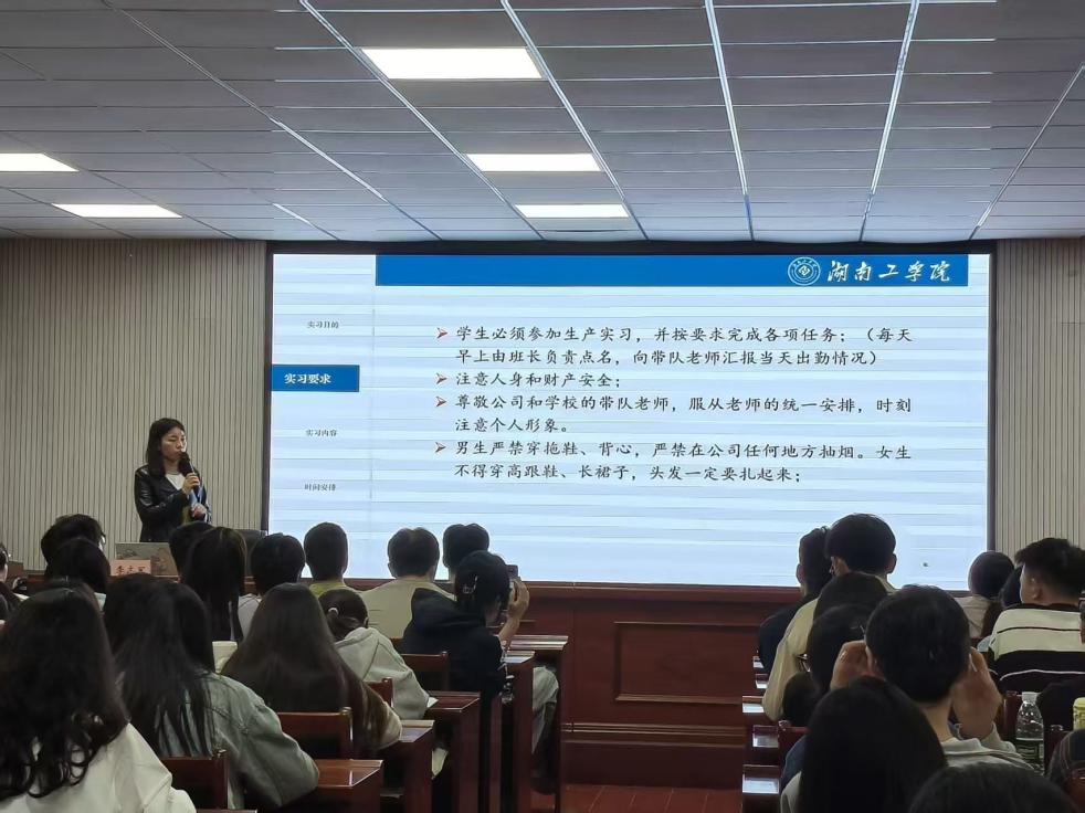会议中,杨英详细介绍了此次生产实习的内容,时间安排及注意事项。她指出,本次实习将涵盖南岳电控、燕京啤酒等多家企业,旨在加强理论与实践的结合,拓宽学生的学习与交流平台。她强调,“安全”是本次实习的核心,要求同学们时刻保持警惕,确保实习过程中的各项安全事项得以落实。