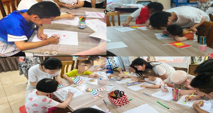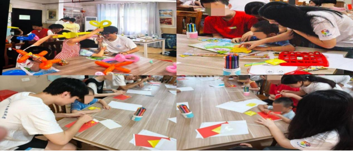 活动中,志愿者与孩子们通过制作彩绘书签、红旗和趣味气球互动,在动手实践里寄托未来期许,传递温暖,拉近距离,欢声笑语充满课堂。