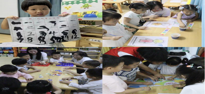 通过“同拼中国梦”拼图识山河、“绘染童心”画青花与民族服饰,孩子们主动探索,深化文化自信。“24节气翻翻乐”配谚语、“永字八法”习翰墨,传统智慧在游戏中浸润童心。