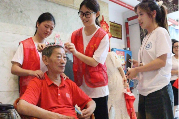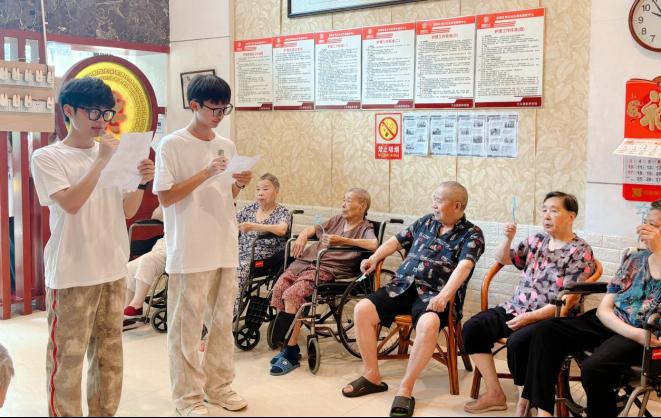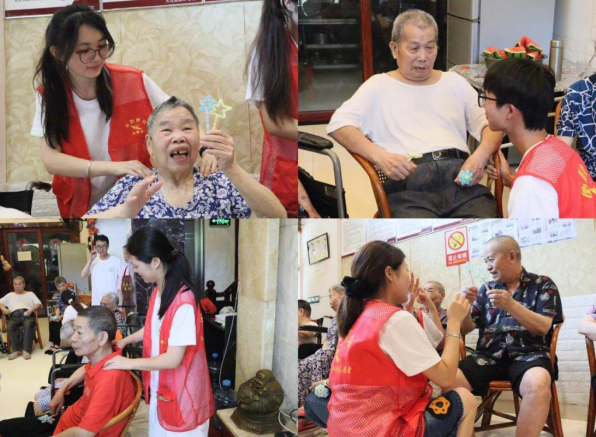 为弘扬尊老敬老传统美德,践行雷锋志愿服务精神,7月8日上午,best365中国官方网站商学院“青春扬帆,情暖社区”暑期社会实践团走进粤汉社区粤汉养老服务中心,以“爱洒养老院,情暖黄昏心”为主题开展志愿服务,用青春朝气为老人们送去温暖与慰藉。