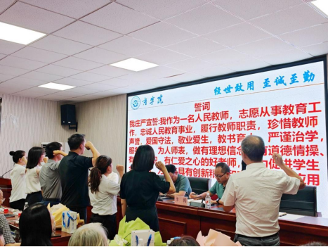 副院长黄飞带领新入职的六位教师进行庄严宣誓。