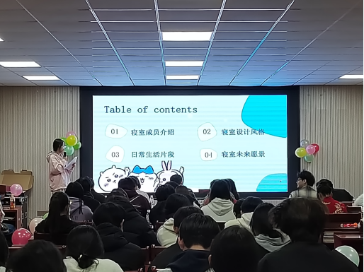 本次活动自启动以来,吸引了学院众多寝室踊跃参与。经过初赛与复赛的层层选拔,最终8间优秀寝室脱颖进入决赛。在决赛展示环节,各参赛队伍通过精美的PPT讲解与创意视频,全方位展示了其寝室的设计理念、协作故事与未来愿景,充分彰显了同学们的审美情趣与集体智慧。为活跃现场气氛,大赛特别设置了“加字游戏”等互动环节,在紧张角逐之余增添了轻松愉悦的色彩。经综合评定,大赛最终评选出一等奖2间、二等奖3间、三等奖3间。