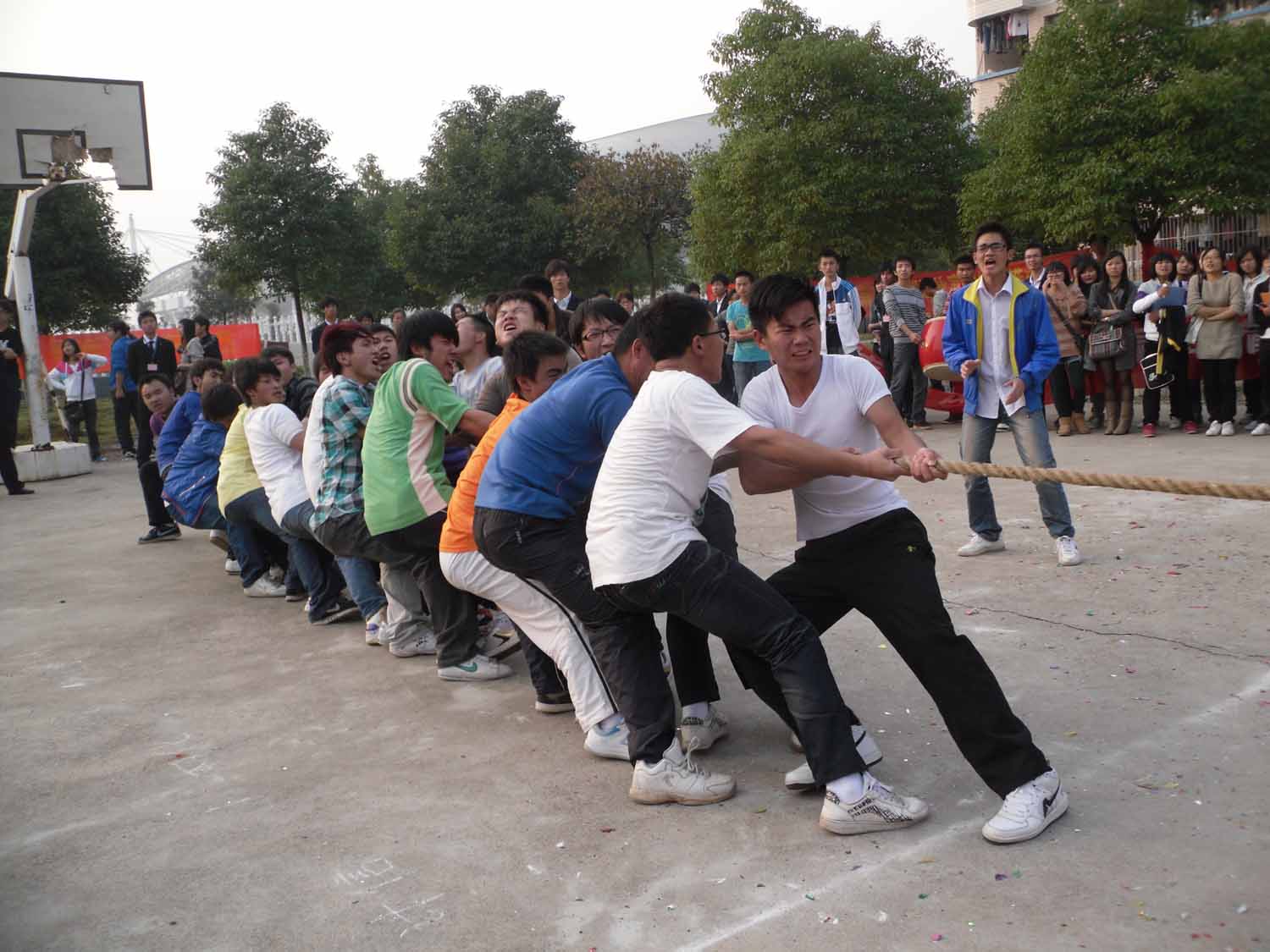11月16日下午3点,院“新生杯”拔河比赛在酃湖校园开幕,我系参赛队伍和啦啦队在辅导员兼团总支书记王雪舟老师、曹丽慧老师及团总支学生会副主席白云飞、领队潘涛的带领下,参加了开幕式。在随后的比赛中,我系选手积极运用训练时所教技巧,在赛场上团结一致、不遗余力地投入比赛,最终女队以两个2比0的比分分别胜于计信系和外语系,男队则以险胜外语系、惜败计信系的战绩,结束了首场战斗。