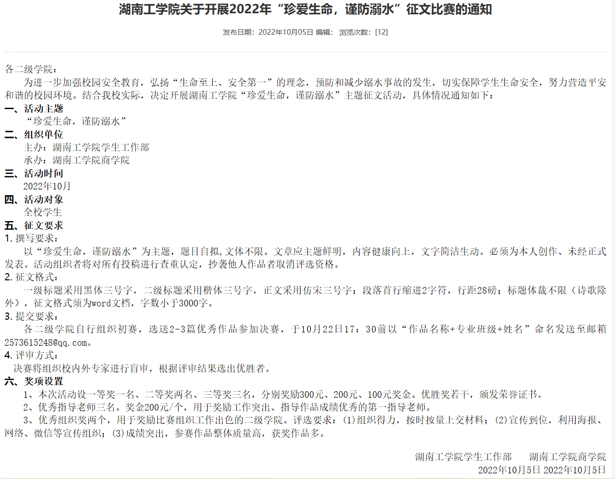 best365中国官方网站关于开展2022年“珍爱生命,谨防溺水”征文比赛的通知