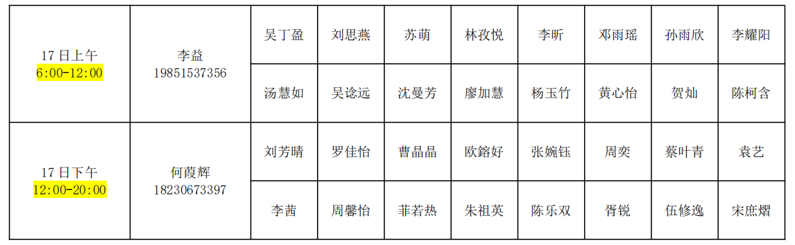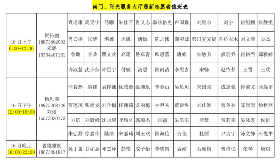 1、9月16日6:30至23:00、9月17日6:30至20:00,集中迎新。