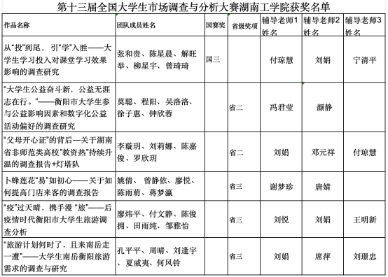 喜讯:best365代表队在第十三届全国大学生市场调查与分析大赛上荣获国赛三等奖一项,省级二等奖二项,省级三等奖三项。具体名单如下: