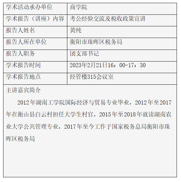 【讲座预告】考公经验交流及税收政策宣讲