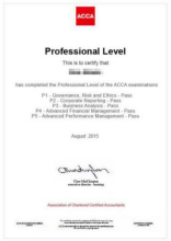 ACCA教学班曾捷同学荣获 Finance Reporting paper 第一名