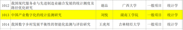 根据全国哲学社会科学工作办公室发布的“2022年度国家社科基金年度项目和青年项目立项名单的公示”,我院刘悦博士申报的“中国产业数字化的统计监测研究”项目获批立项。刘悦博士多年来坚持科学研究,深耕应用经济学领域,在国内外高水平专业期刊发表论文10余篇,先后主持了教育部人文社科、湖南省自科以及学校培育项目等多项课题。经过近几年的不懈努力,终于取得了突破性成果。