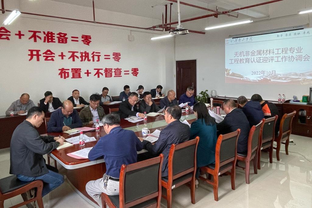 会上,材料科学与工程学院院长罗建新就无机非金属材料工程专业迎评工作准备情况与存在的问题进行了通报,教学质量监控与评估办公室主任彭志忠就无机非金属材料工程专业工程教育认证迎评工作方案、任务分工及专家线上考查日程安排进行了说明,各部门、各单位就无机非金属材料工程专业认证线上评估考查期间的线上直播、实验室美化等问题进行了沟通与交流。