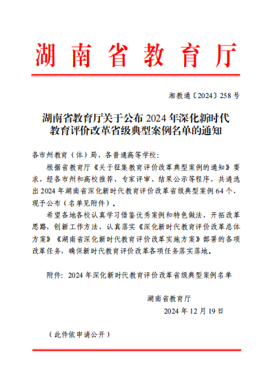 best365入选2024年湖南省深化新时代教育评价改革省级典型案例