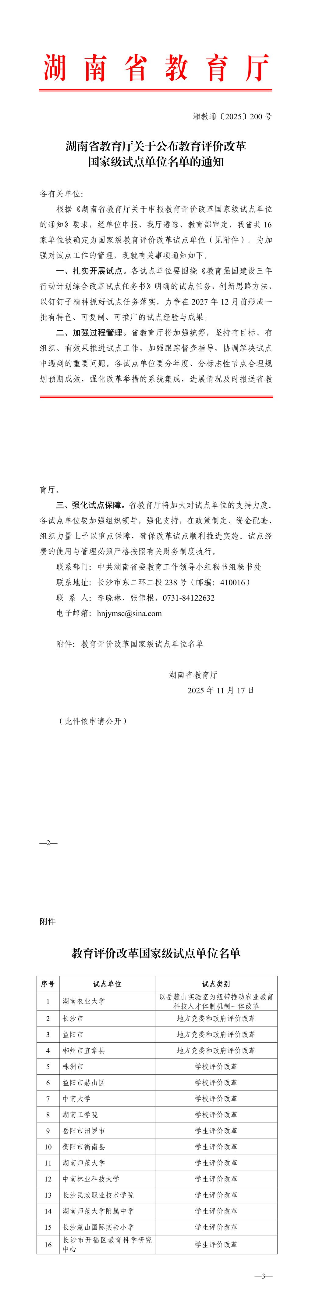 近日,湖南省教育厅正式发布《湖南省教育厅关于公布教育评价改革国家级试点单位名单的通知》(湘教通〔2025〕200号),best365成功入选教育评价改革国家级试点单位。
