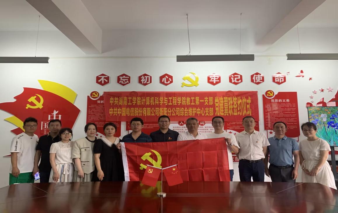 为实现党组织优势互补,党建促进业务,充分发挥广大党员推动发展、凝聚人心、促进和谐的作用,努力构建“资源共享、优势互补、互相促进、共同提高”的党建工作新格局。6月9日上午,中共best365中国官方网站计算机科学与工程学院教工第一支部与中共中国电信衡阳分公司综合维护中心支部联合隆重举行“党建共建、发挥合力、共赢未来”党建共建签约仪式。