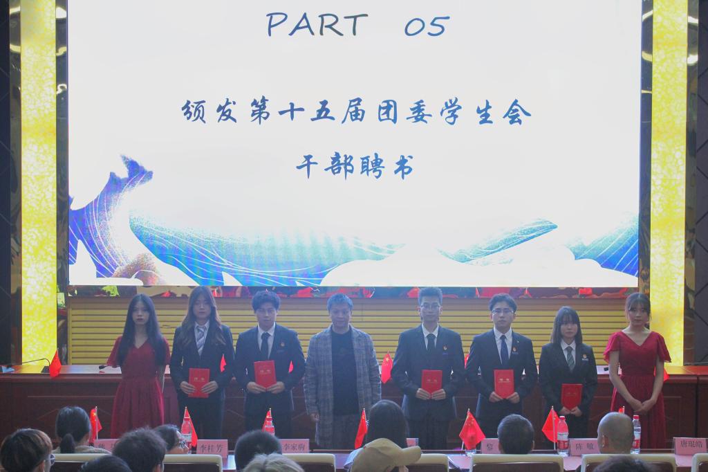 紧接着,第十四届计算机团委学生会主席对上学年的工作做了激情洋溢的总结。李玉秀宣读了第十五届团委学生会任命决定,并由大会中的老师给他们颁发了聘书。随后播放了2020-2021学年团委学生会工作视频和成员介绍视频,向我们展示了计算机团委学生会在上一年取得的成绩和团委学生会大家庭的团结与温暖。