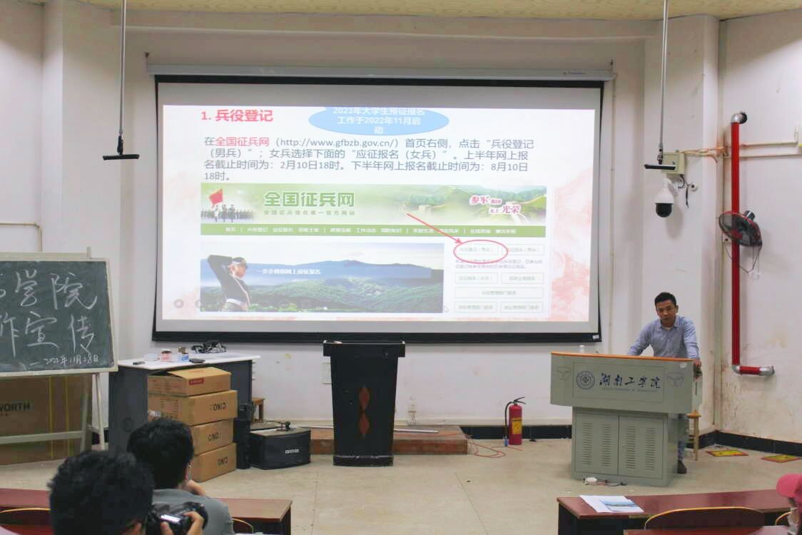 辅导员老师热苏里·乌斯曼以“响应国家号召,投身热血军营”为主题作宣讲,为同学们讲解了当兵的意义、大学生当兵优惠政策和征兵流程。他提到征兵工作是建设巩固国防和强大军队的基础工程、源头工程和造血工程,要努力建设一支听党指挥、能打胜仗、作风优良的人民军队,把征兵工作作为强军备战的政治任务,鼓励更多优秀青年参军入伍、建功军营,为强军兴军输送优质兵员。