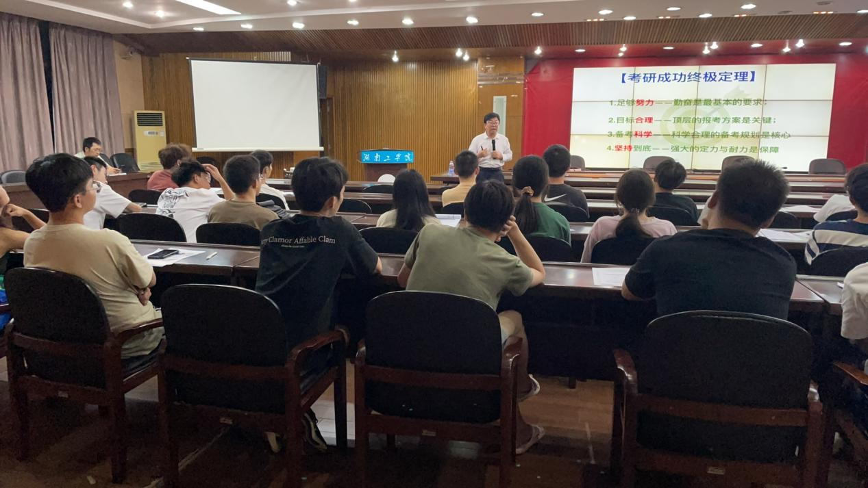 讲座上,国玉明老师分析了考研最新形势,并对各学科复习进行了详细的指导和分享。他表示,同学们要打破信息差,重视择校择专业,选择大于努力。他还向同学们展示了考研成功终极定律——足够努力+目标合理+备考科学+坚持到底=考研成功。