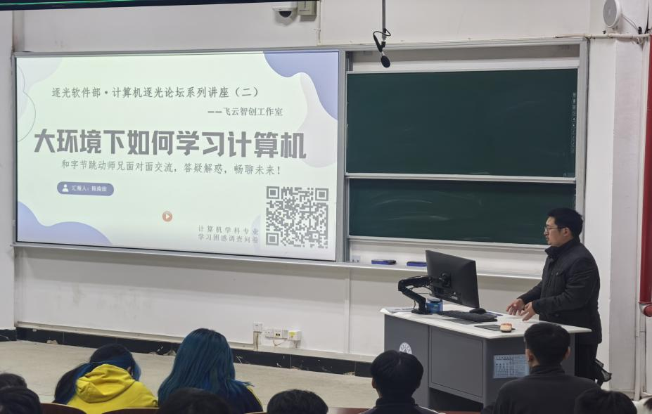 为帮助同学们更好地适应快速变化的社会和就业市场,提升个人的职业竞争力,2024年12月19日,计算机科学与工程学院计算机协会在信息楼2113举办了以“大环境下如何学习计算机”为主题的分享会,特别邀请了在计算机专业知识学习及软件工程实践上有丰富经验的大四学长陈南田作为主讲嘉宾。计算机科学与工程学院副院长戴成秋、计算机基础教研室主任周瑞玲、大数据教研室周文剑老师及学院部分学生参加了本次活动。