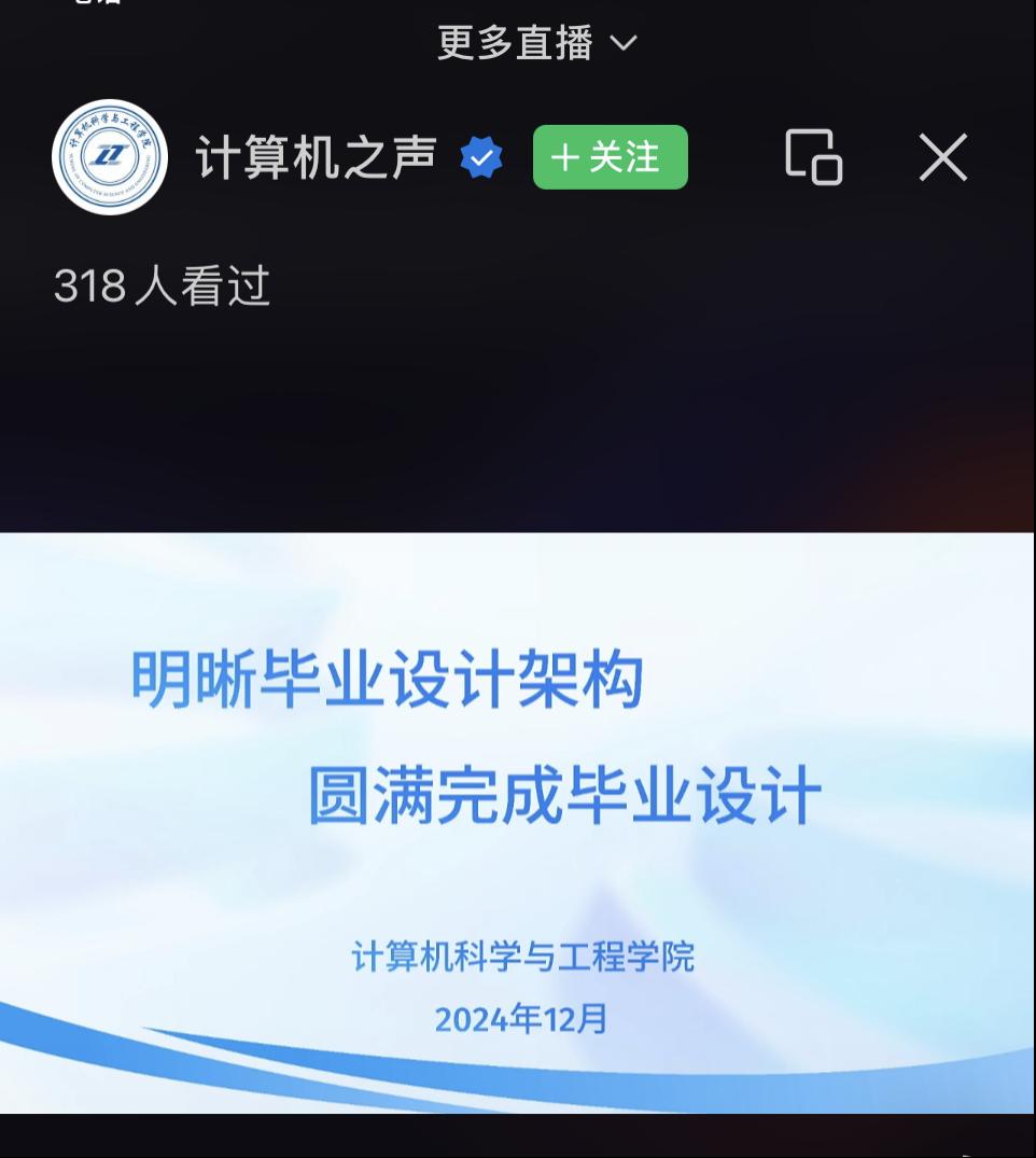 2024年12月24日,best365中国官方网站计算机科学与工程学院线上线下成功举办了毕业设计系列讲座的首场讲座——“明晰毕业设计架构,圆满完成毕业设计”,作为毕业设计工作系列活动的重要一环,讲座旨在保证毕业设计质量的同时,提升师生专业素养和实践能力。